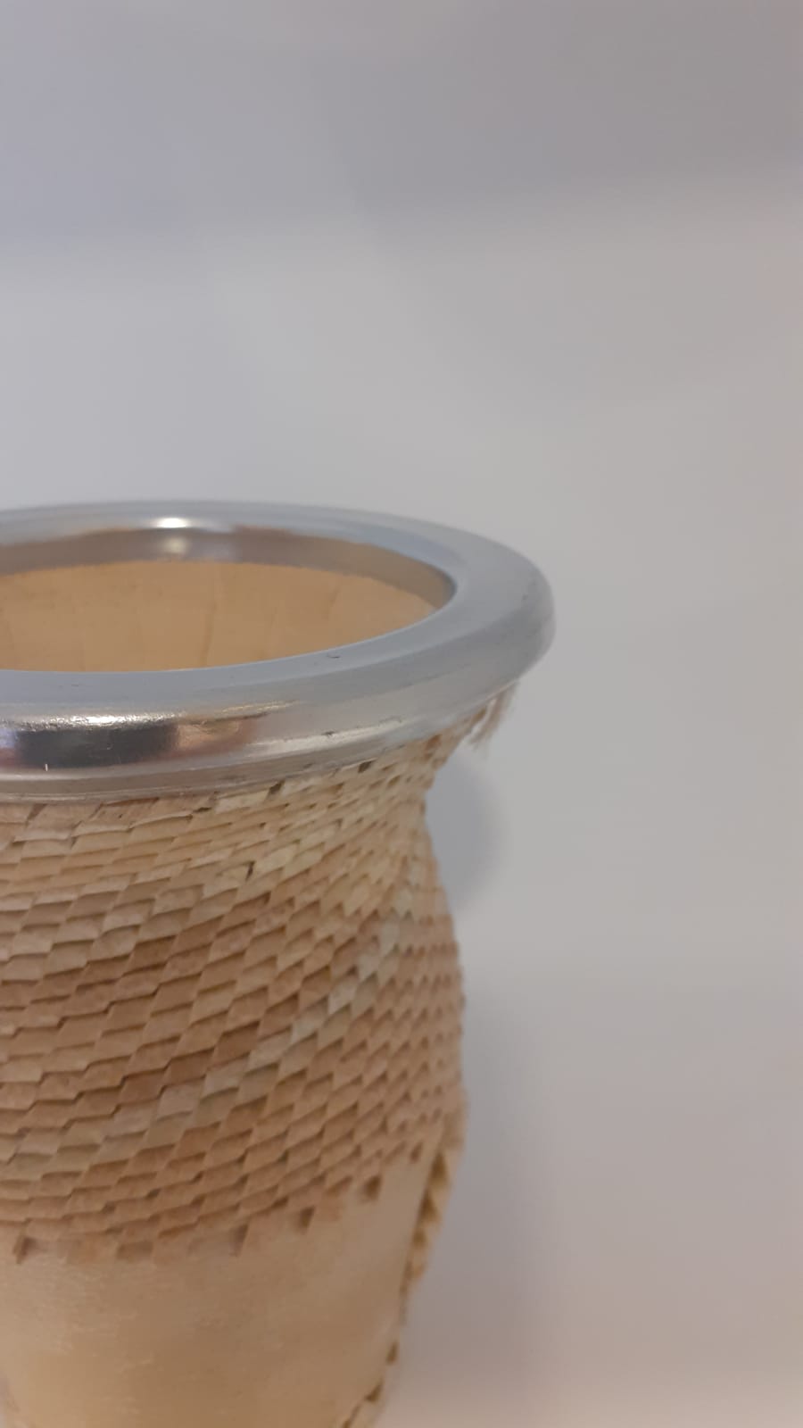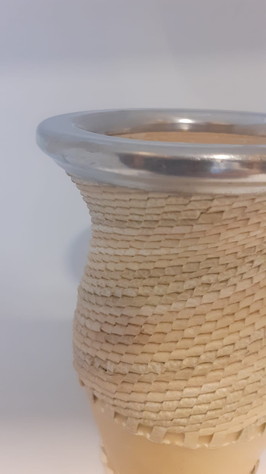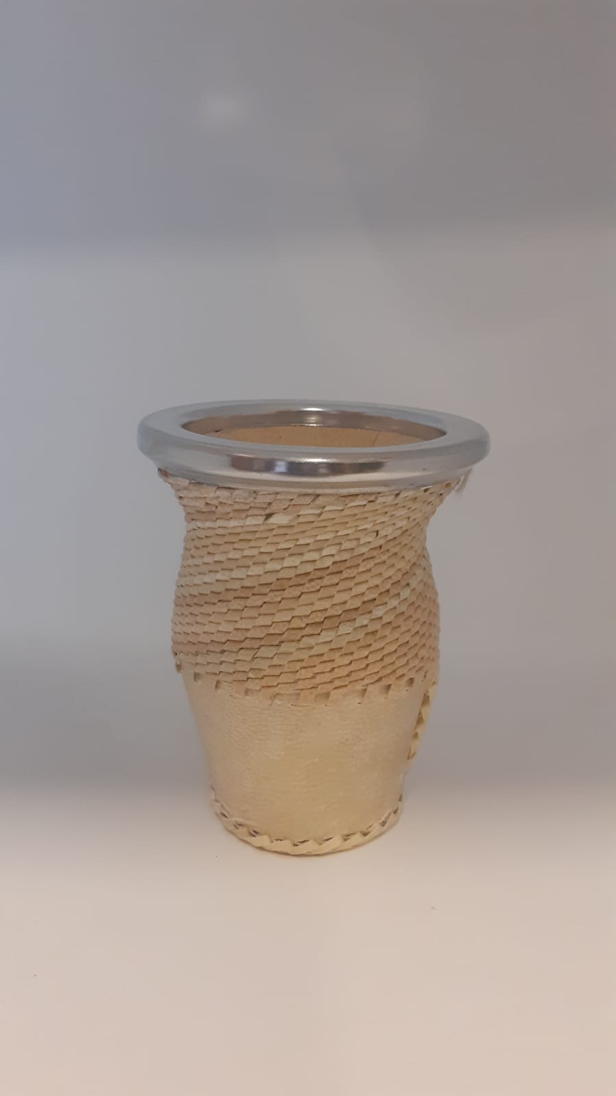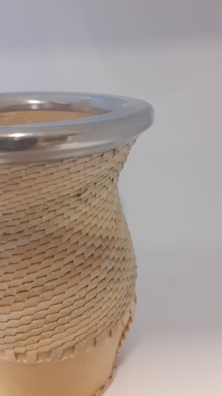 Mate bocón de cuero trenzado con virola de aluminio tallada