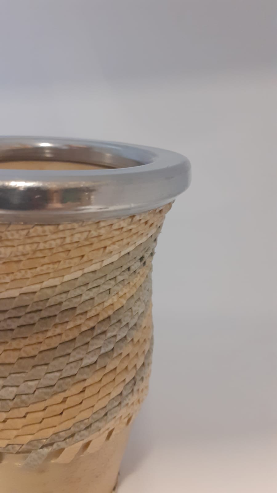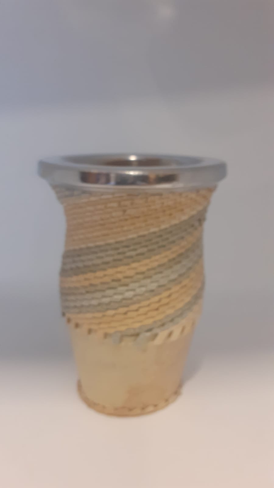Mate bocón de cuero trenzado con virola de aluminio tallada
